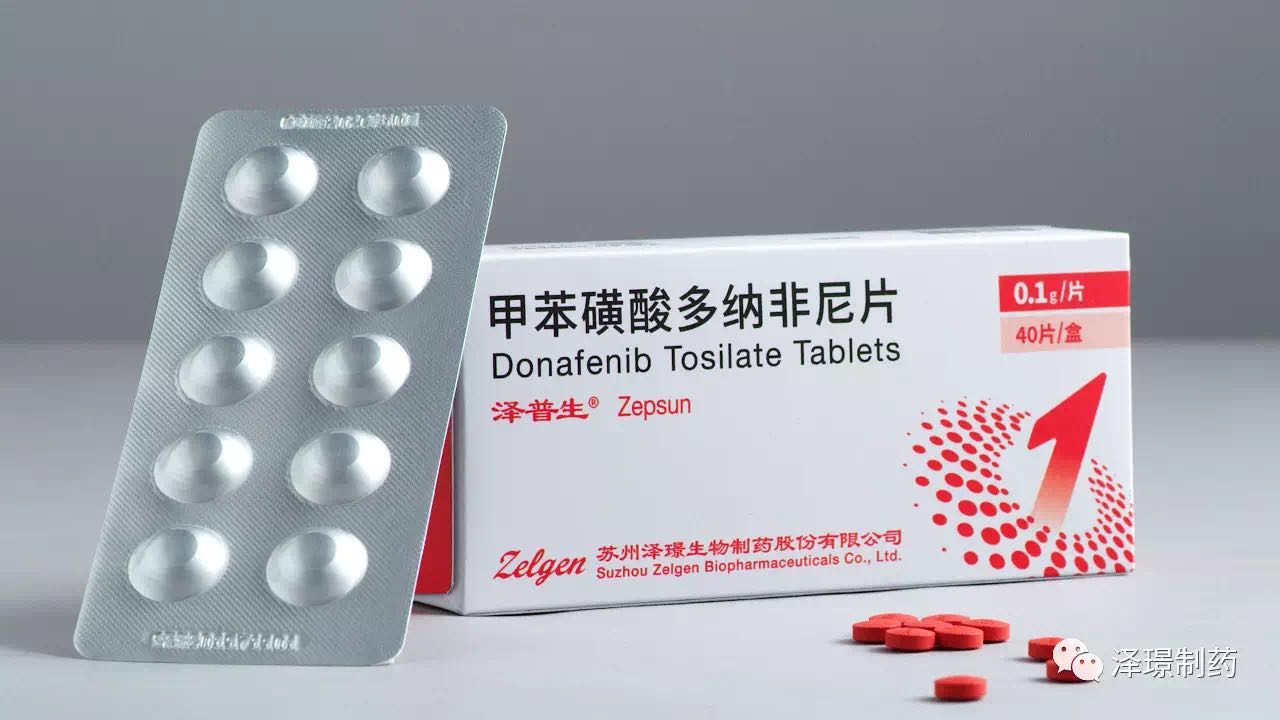 甲苯磺酸多纳非尼片是泽璟制药开发的口服多靶点、多激酶抑制剂类小分子抗肿瘤药物,属于1类新药,公司拥有独立的自主知识产权。临床前药理学研究证实,多纳非尼既可抑制VEGFRPDGFR等多种受体酪氨酸激酶的活性,也可直接抑制各种Raf激酶,并抑制下游的Raf/MEK/ERK信号传导通路,抑制肿瘤细胞增殖和肿瘤血管的形成,发挥多重抑制、多靶点阻断的抗肿瘤作用。公司已向国家药品监督管理局(NMPA)提交了多纳非尼新药上市申请(NDA)。